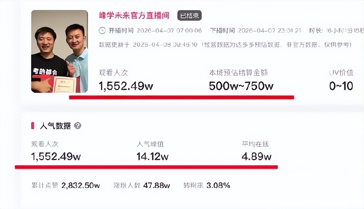 这样的水平,不亚于张雪峰生前的直播销售数据。